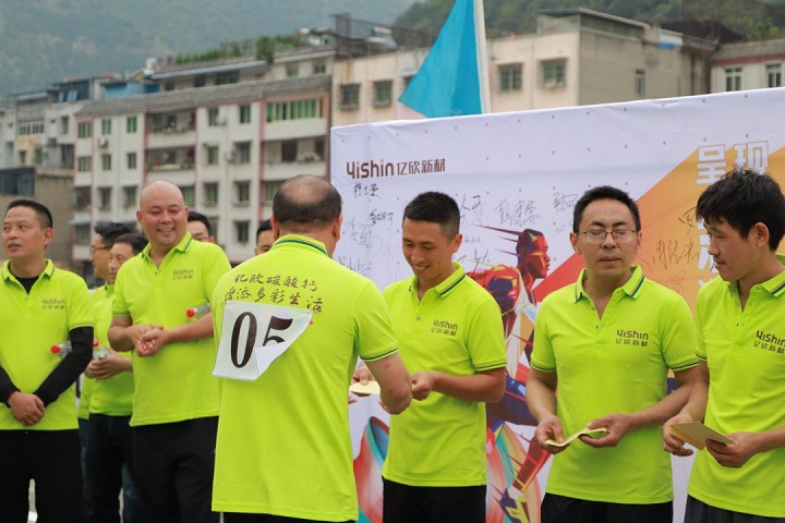 早上8点,亿欣团队早早的来到活动现场,纷纷在签名墙上留下自己的签名后便开始热身,大家相互鼓励着,言语间又透露着信心和决心。